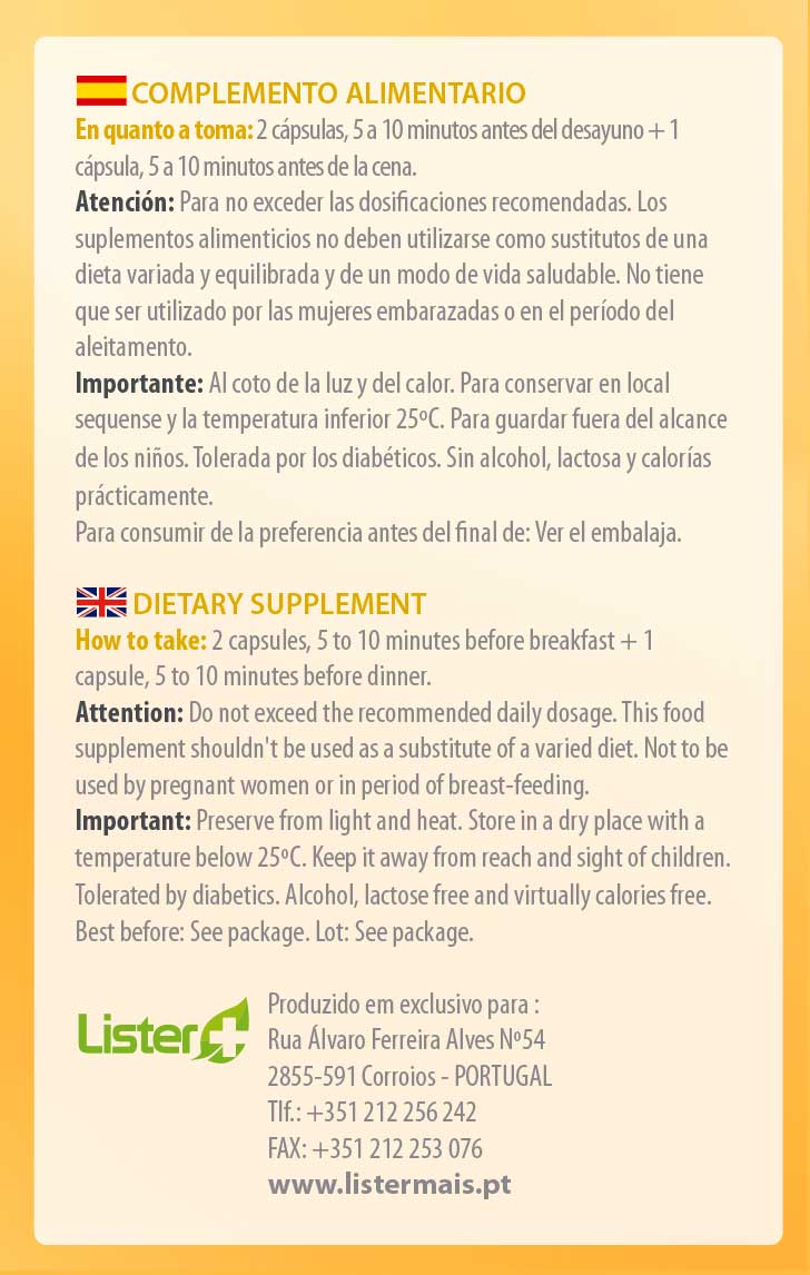 | Piper Nigrum (extrato estandardizado a 95% de Piperina) | 5 mg. |